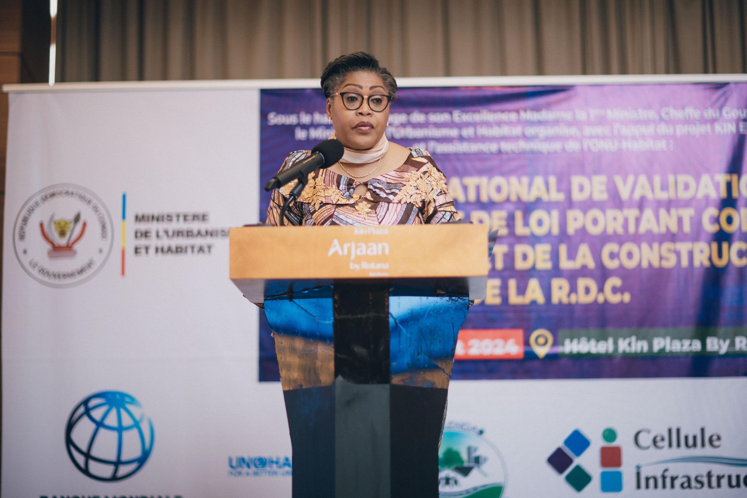 La Première Ministre Judith Suminwa Tuluka a ouvert, lundi 29 juillet 2024, l’Atelier national de validation de l’avant-projet de loi portant Code d’Urbanisme et de Construction de la RDC, à l’hôtel Kin Plazz Arjaan By Rotana. Ces assises organisées par le Ministre de l’Urbanisme et Habitat, Crispin Mbadu Panzu avec l’appui du projet Kin Elenda et l’assistance technique et financière de la Banque Mondiale et de l’Onu Habitat, a connu la participation du Vice-premier Ministre, Ministre du Plan, Ministre délégué près le Ministre de l’Urbanisme et Habitat, chargé de la politique de la ville, de la Ministre du Genre famille et enfant, Léonie Kandolo ainsi que de quelques députés nationaux et des experts du secteur de l’Urbanisme.